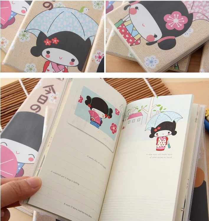 "Kimono Girl" Cute Diary Planner Mini Pocket Journal School Study Notebook Korean Agenda Notepad Tiny Memo Free Note Gift